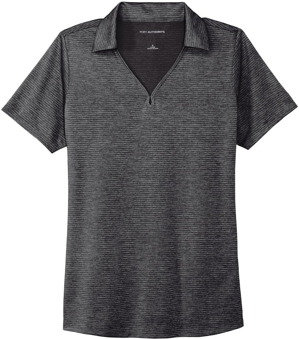 This Port Authority Ladies Shadow Stripe Polo is the perfect combination of style and professionalism. The short sleeved women's polo shirt is made out of a one hundred percent polyester jersey material. The shirt is snag resistant and designed to last a while. The shirt has moisture wicking properties that will keep your skin cool and dry through the day. Remember that this shirt does run true to size.